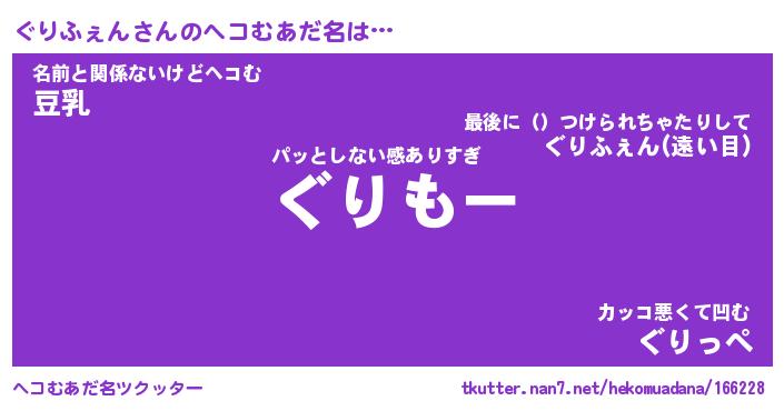 | 男性向けラノベタイトル風あだ名 | 『ぐりふぇんの憂鬱』 |