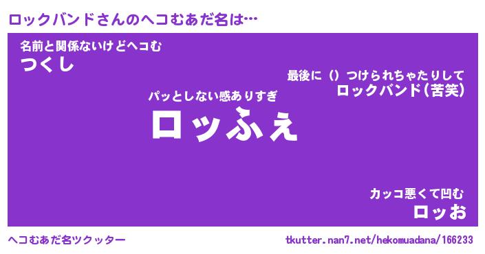 | 恥ずかしいあだ名 | 『プリティーロックバンド』『ロッっちょ』 |