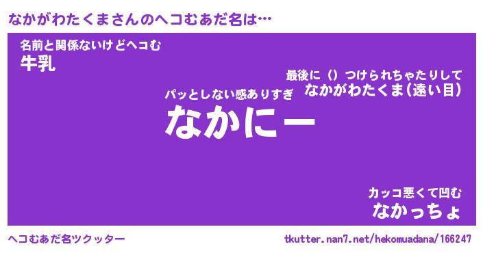 | ポケモン風あだ名 | 『ナカチュウ』『ナカガダネ』 |