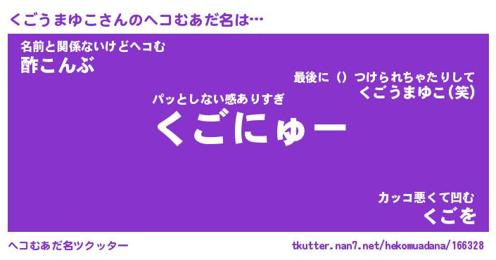 | ヒーロー風カッコイイあだ名 | 『スーパークゴウマユコ』『暗黒騎士クゴ』 |