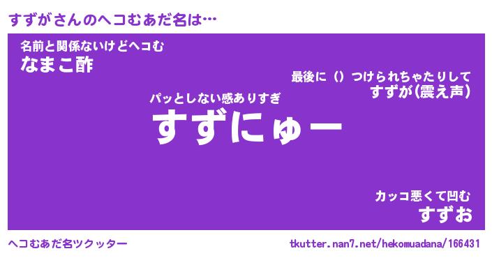 | ポケモン風あだ名 | 『スズチュウ』『スズガダネ』 |