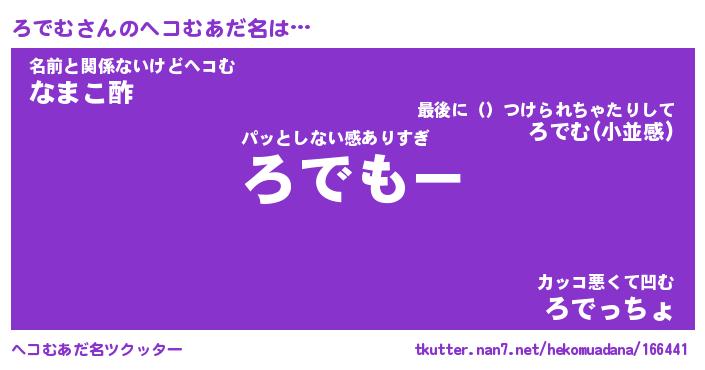 | 意味不明あだ名 | 『ペロリンろでむ』『ろでむフォーエバー』 |