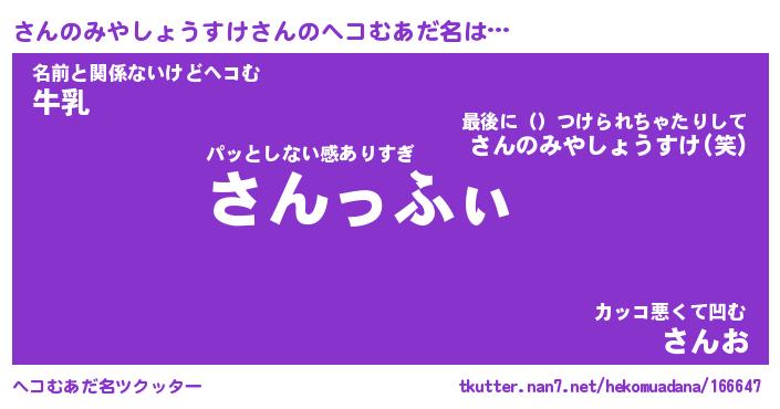 | 欧米人風あだ名 | 『マイケルさんのみやしょうすけ』 |