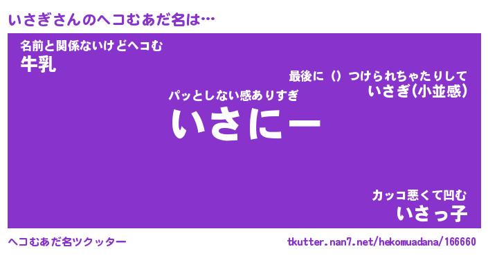 | 男性向けラノベタイトル風あだ名 | 『いさぎの憂鬱』 |