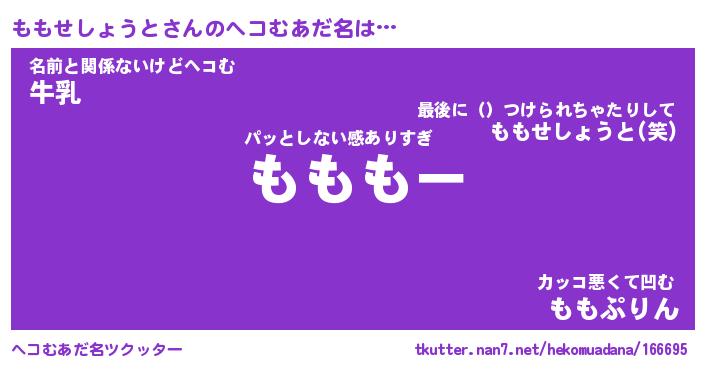 | 意味不明あだ名 | 『ペロリンももせしょうと』 |