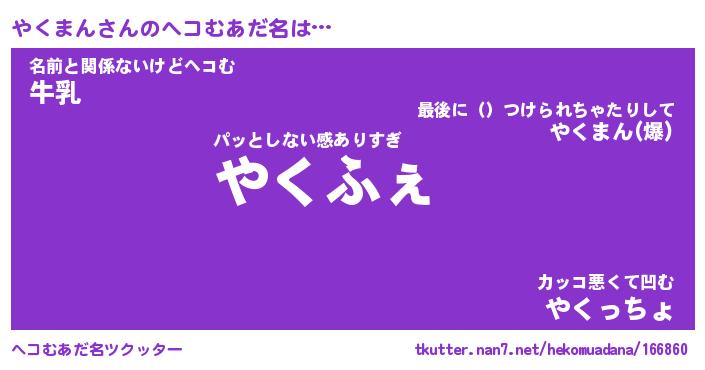 | ファンタジー風あだ名 | 『ヤクフェル』『エターナルヤクマンー』 |