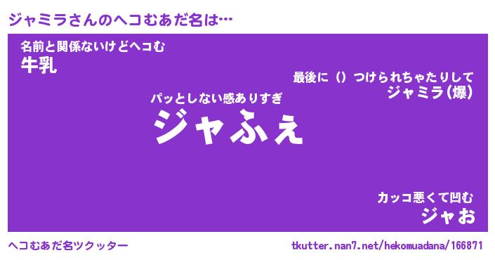 | ヒーロー風カッコイイあだ名 | 『スーパージャミラ』『炎刃騎士ジャ』 |