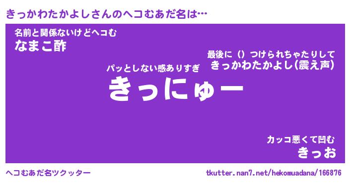 | 胡散臭い通販商品みたいなあだ名 | 『億万長者になれる水晶球…その名も「きっかわたかよし」』 |