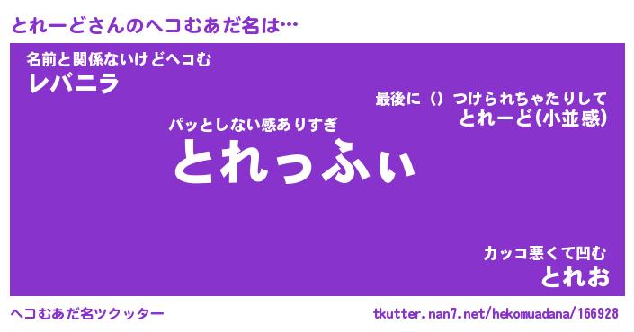 | 恥ずかしいあだ名 | 『プリティーとれーど』『とれっちょ』 |