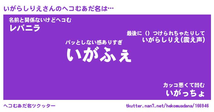 | ヒーロー風カッコイイあだ名 | 『スーパーイガラシリエ』『天弓騎士イガ』 |