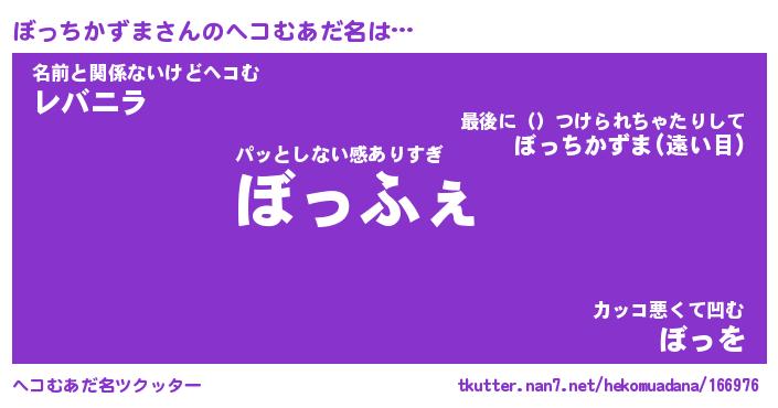 | ヒーロー風カッコイイあだ名 | 『スーパーボッチカズマ』『幻影騎士ボッ』 |