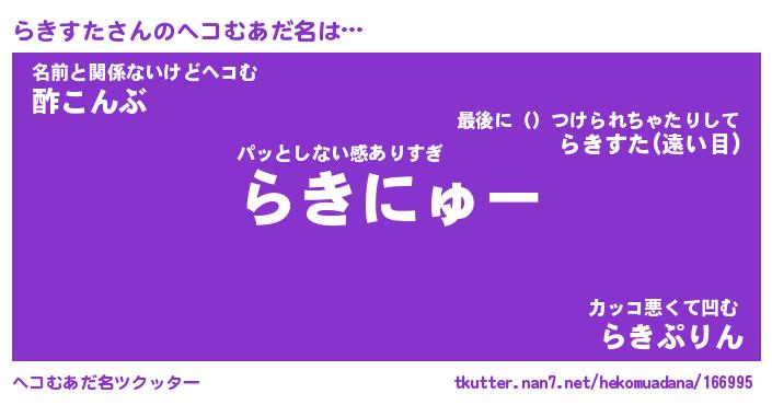 | 2回繰り返すあだ名 | 『らきらき』『ららきき』『こそこそ』 |