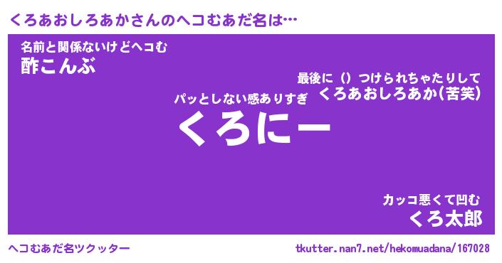 | 意味不明あだ名 | 『ペロリンくろあおしろあか』 |