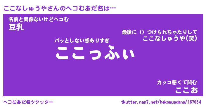 | 意味不明あだ名 | 『ペロリンここなしゅうや』 |