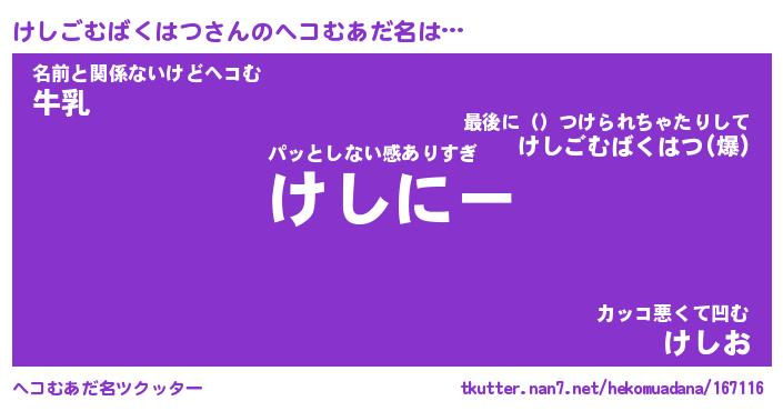 | ポケモン風あだ名 | 『ケシチュウ』『ケシゴダネ』 |
