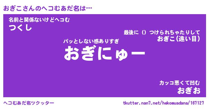 | ヒーロー風カッコイイあだ名 | 『スーパーオギコ』『ウルトラおぎこマン』 |