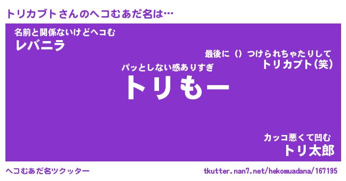 | 恥ずかしいあだ名 | 『プリティートリカブト』『トリっちょ』 |