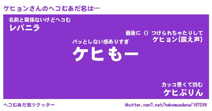 | 2回繰り返すあだ名 | 『ケヒケヒ』『ケケヒヒ』『がみがみ』 |