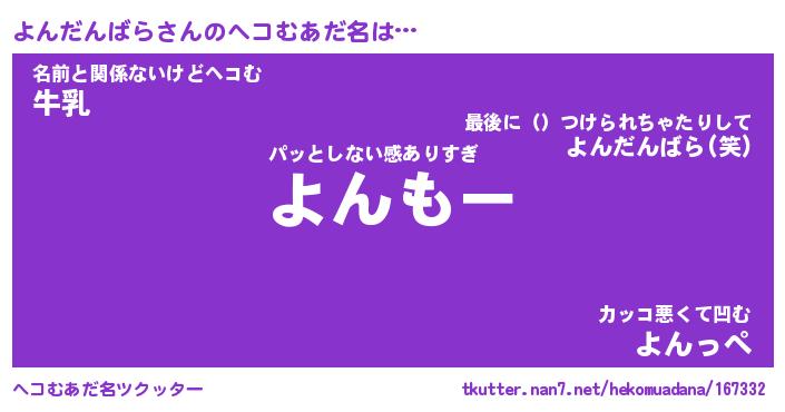 | 2回繰り返すあだ名 | 『よんよん』『よよんん』『おやおや』 |