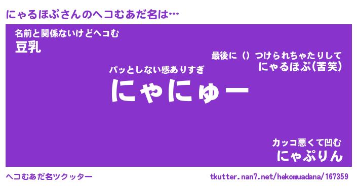 | 意味不明あだ名 | 『ペロリンにゃるほぷ』 |