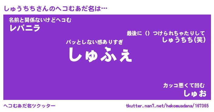 | ヒーロー風カッコイイあだ名 | 『スーパーシュウチチ』『天弓騎士シュ』 |