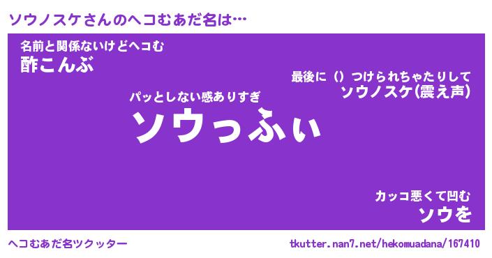 | ヒーロー風カッコイイあだ名 | 『スーパーソウノスケ』『天弓騎士ソウ』 |