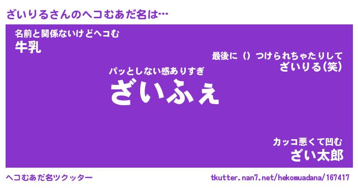 | ポケモン風あだ名 | 『ザイチュウ』『ザイリダネ』 |