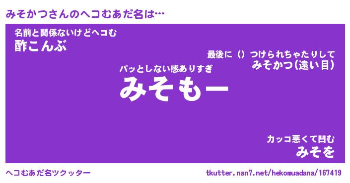 | ポケモン風あだ名 | 『ミソチュウ』『ミソカダネ』 |