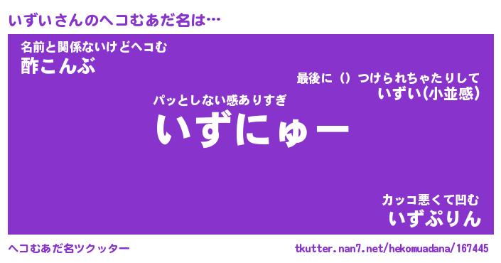 | ポケモン風あだ名 | 『イズチュウ』『イズイダネ』 |