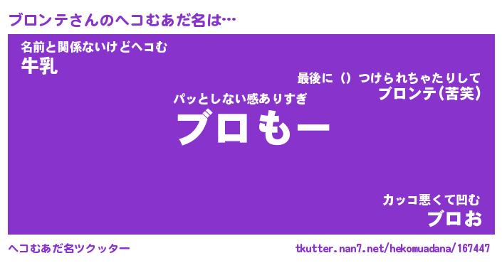 | ファンタジー風あだ名 | 『ブロフェル』『エターナルブロンテー』 |