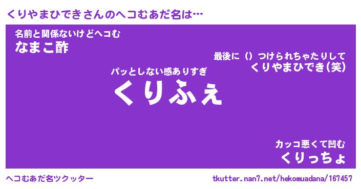 | 意味不明あだ名 | 『ペロリンくりやまひでき』 |
