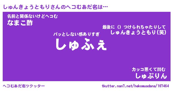 | 意味不明あだ名 | 『ペロリンしゅんきょうともり』 |