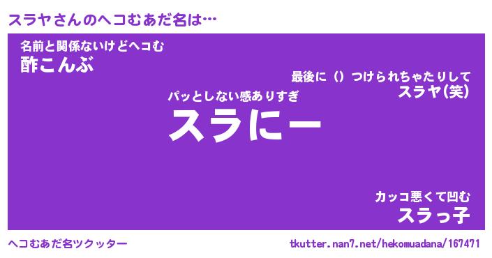 | ポケモン風あだ名 | 『スラチュウ』『スラヤダネ』 |
