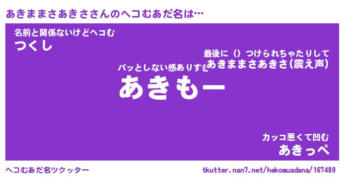 | 2回繰り返すあだ名 | 『あきあき』『ああきき』『ぎーぎー』 |