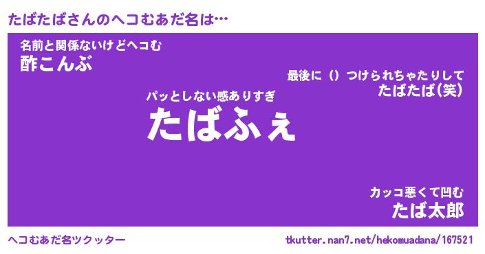 | 意味不明あだ名 | 『ペロリンたばたば』『永久保存たばたば』 |