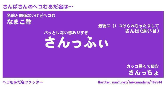 | 意味不明あだ名 | 『ペロリンさんば』『さんばフォーエバー』 |