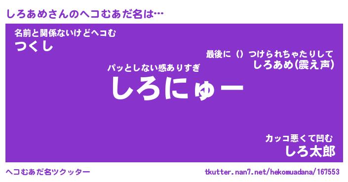 | ヒーロー風カッコイイあだ名 | 『スーパーシロアメ』『暗黒騎士シロ』 |