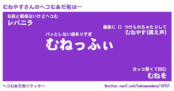 | ファンタジー風あだ名 | 『ムネフェル』『エターナルムネヤスー』 |