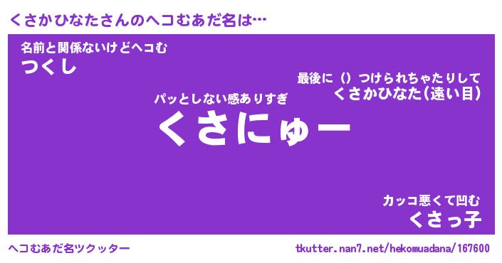 | ヒーロー風カッコイイあだ名 | 『スーパークサカヒナタ』『暗黒騎士クサ』 |