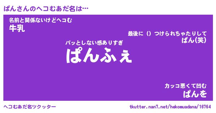 | 2回繰り返すあだ名 | 『ぱんぱん』『ぱぱんん』『ぬめぬめ』 |
