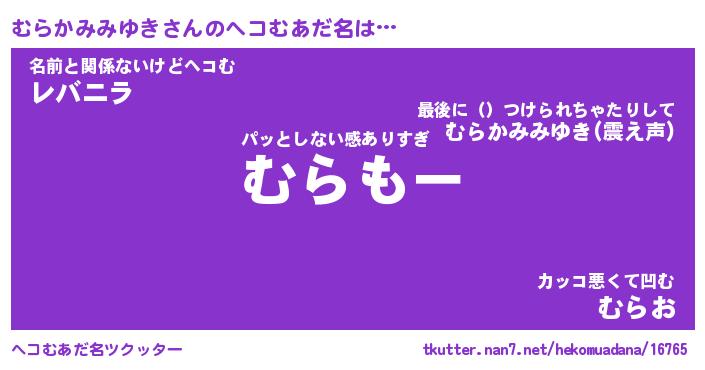 | 伝説のあだ名 | 『伝説のスナイパーむらかみみゆき』 |