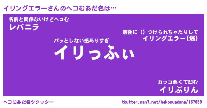 | 恥ずかしいあだ名 | 『プリティーイリングエラー』『イリちん』 |