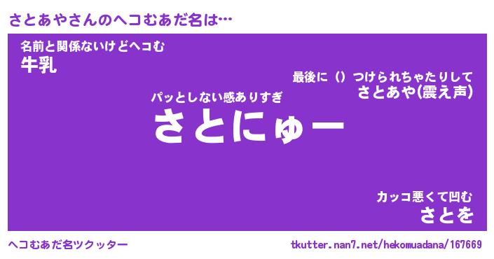 | ファンタジー風あだ名 | 『サトフェル』『エターナルサトアヤー』 |