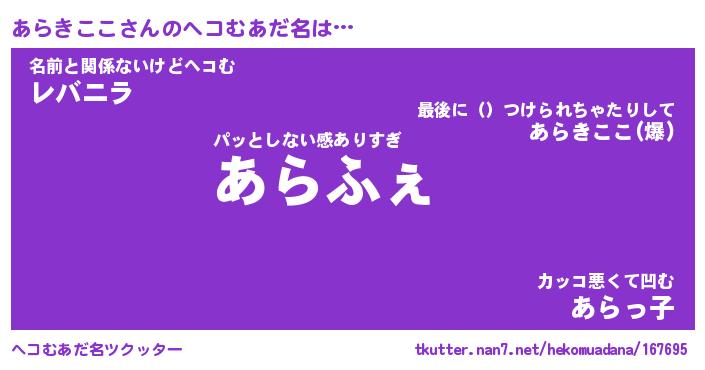 | ヒーロー風カッコイイあだ名 | 『スーパーアラキココ』『暗黒騎士アラ』 |