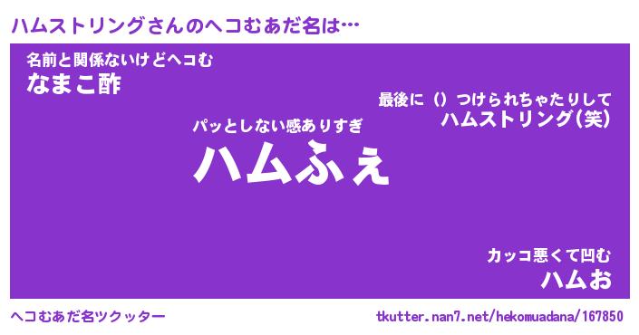 | 欧米人風あだ名 | 『マイケルハムストリング』 |