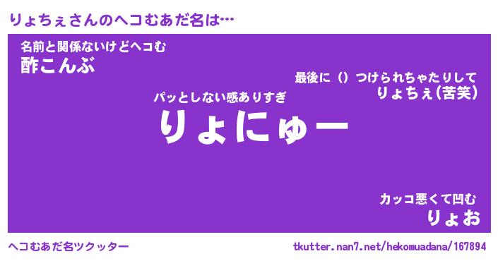 | 2回繰り返すあだ名 | 『りょりょ』『りりょょ』『ぬるぬる』 |