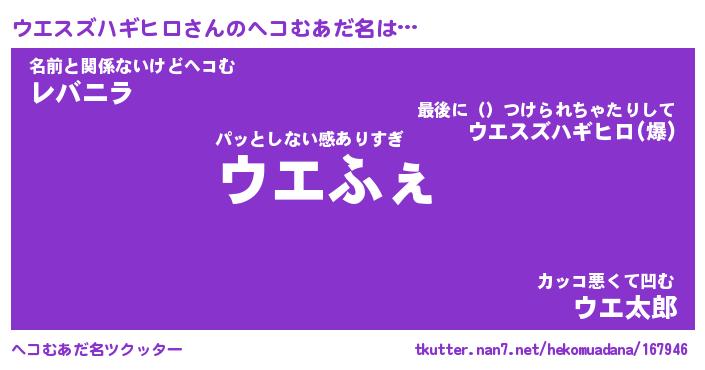 | ポケモン風あだ名 | 『ウエチュウ』『ウエスダネ』 |