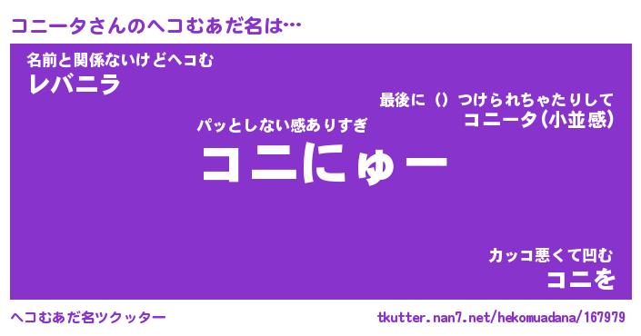 | ファンタジー風あだ名 | 『コニフェル』『エターナルコニーター』 |