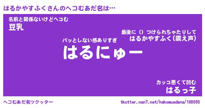 | 恥ずかしいあだ名 | 『プリティーはるかやすふく』『はるちん』 |