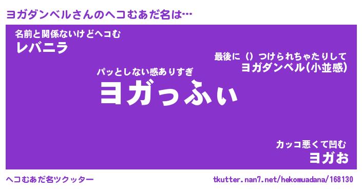 | ポケモン風あだ名 | 『ヨガチュウ』『ヨガダダネ』 |